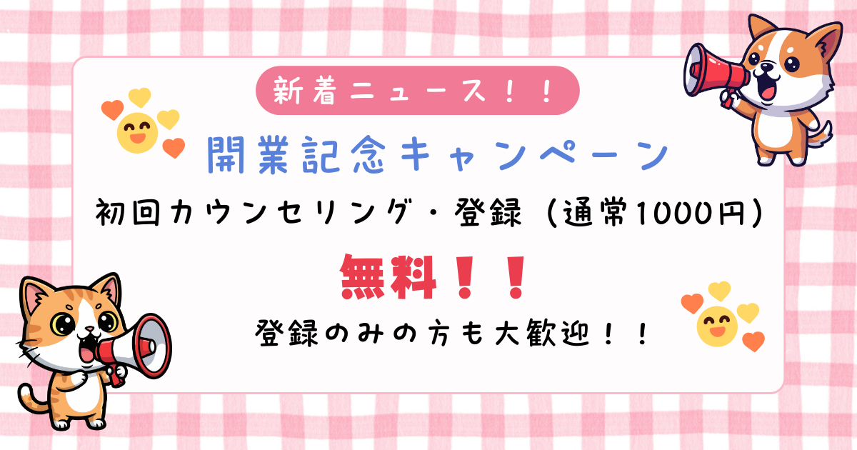 開業を記念し、ただいま初回カウンセリング・登録無料キャンペーンを実施中です。